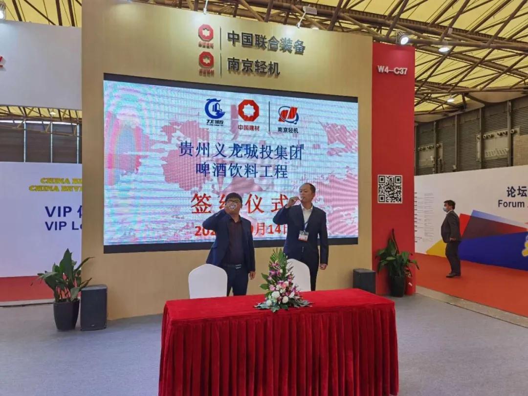 10月14日,CBB2020展會(huì)現(xiàn)場(chǎng)再傳捷報(bào), 南京輕機(jī)與貴州義龍城投集團(tuán)就啤酒飲料工程簽約。這是本次展會(huì)繼與安徽迎客松啤酒簽約后,簽下的又一條整線大單。今年10月新增訂單創(chuàng)歷史新高。