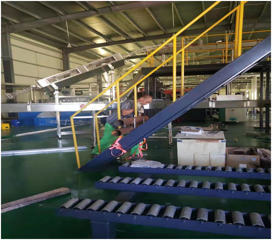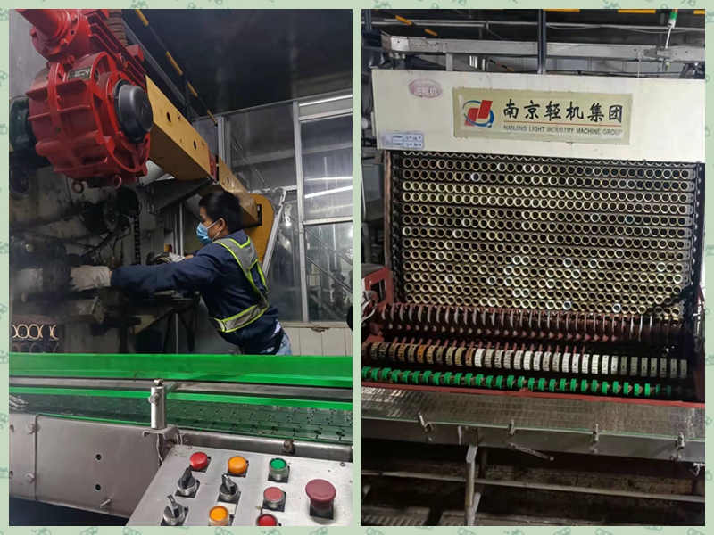 南輕職工在東莞仙津食品有限公司現(xiàn)場(chǎng)調(diào)試24000瓶/小時(shí)洗瓶機(jī)