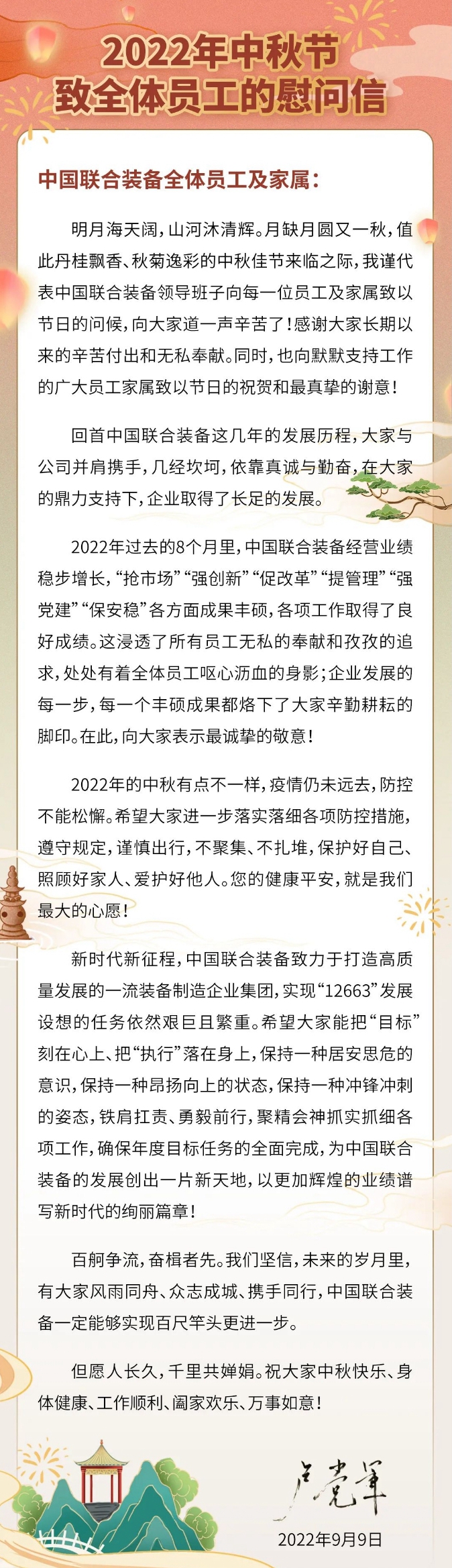 2022年中秋節(jié)致全體員工的慰問信