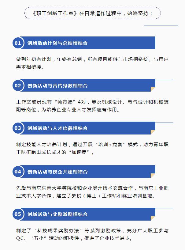 日前,以南輕包裝總經(jīng)理助理、技術(shù)開發(fā)部部長(zhǎng)杜健為負(fù)責(zé)人,副總經(jīng)理、總工程師史敏煒、副總工程師管金岳為技術(shù)顧問的《職工創(chuàng)新工作室》通過南京市總工會(huì)組織的專家評(píng)審,被南京市總工會(huì)認(rèn)定為《南京市職工創(chuàng)新工作室》。